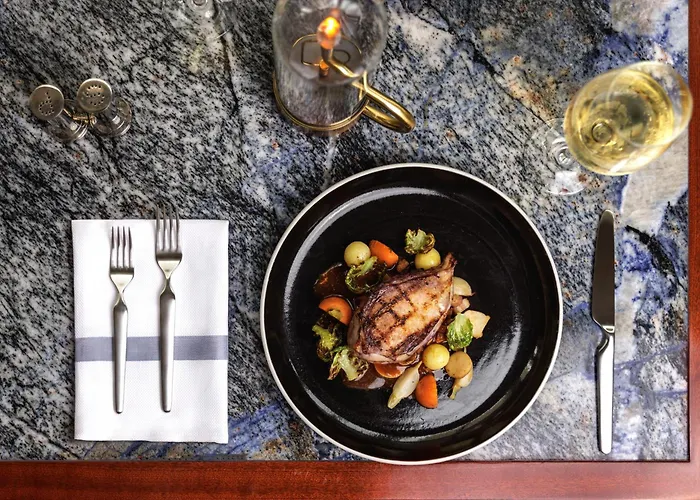 Gasten kunnen ter plaatse genieten van het à la carte restaurant met Amerikaanse keuken en uitzicht op de stad.